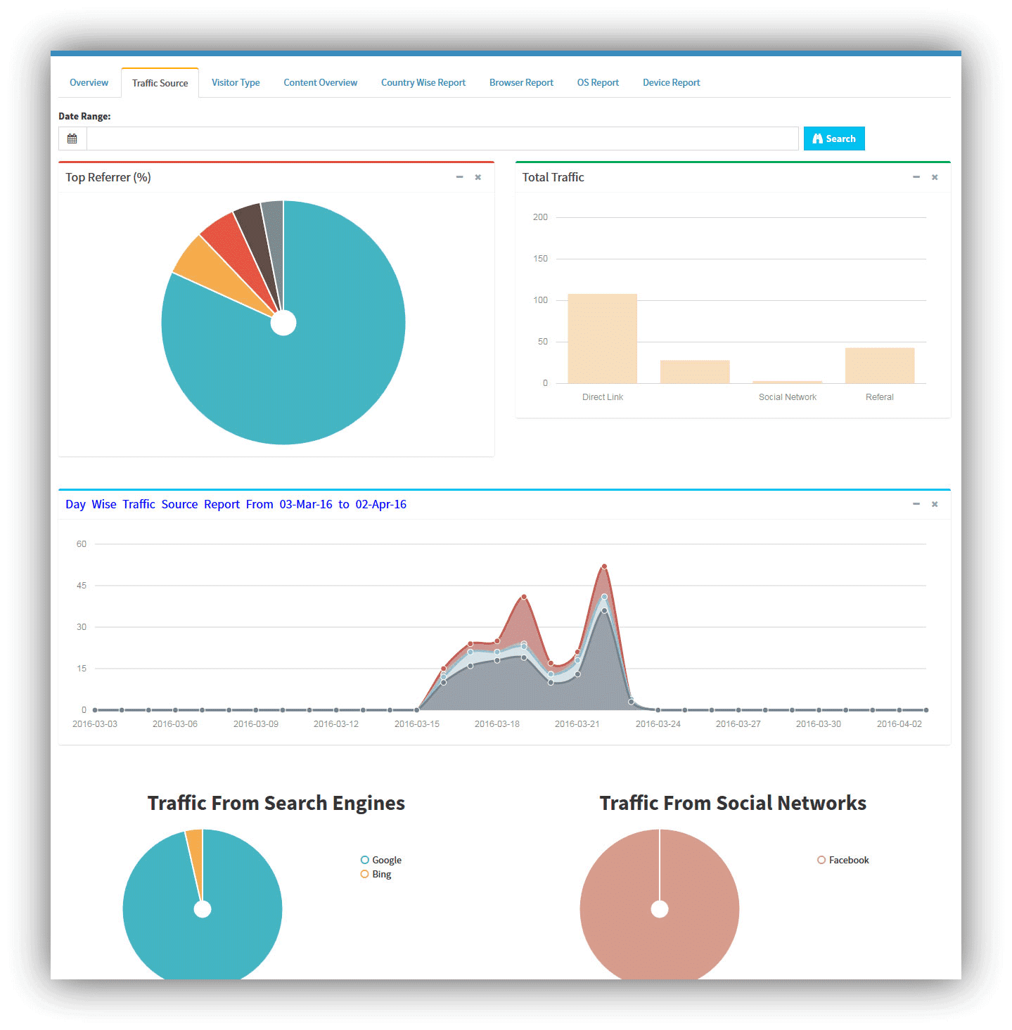 Powerful dashboard with visitor info